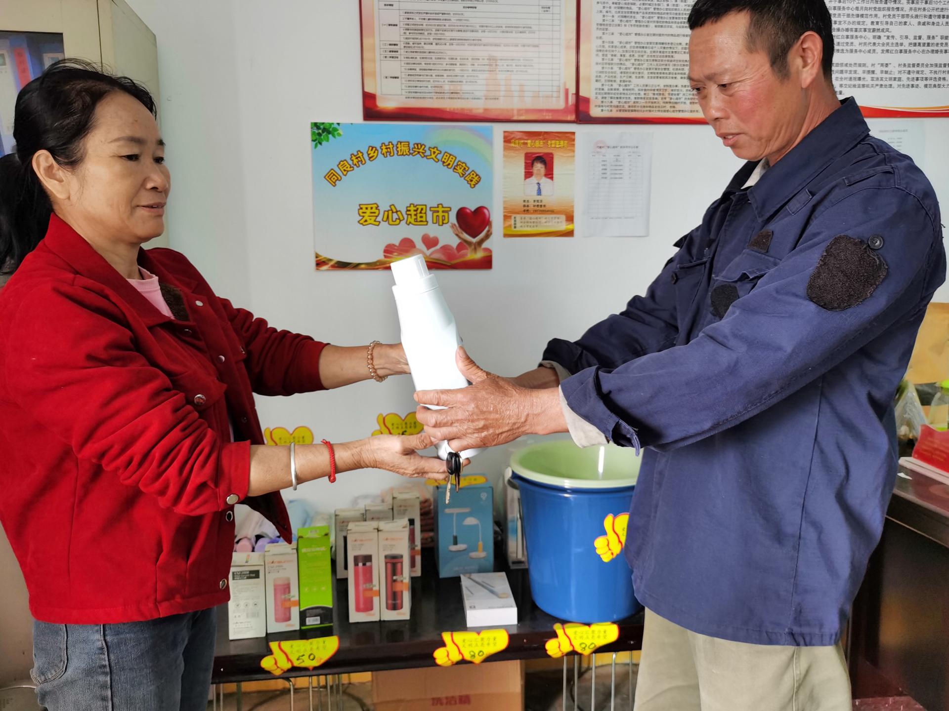 “我想兑换一瓶洗洁精”“麻烦给我两包纸巾”……在爱心积分超市里,不时可以看到有村民拿出手机进行扫码操作兑换日常生活用品。同良村“文明实践积分制”行动将助人为乐、诚实守信、爱岗敬业、孝老爱亲、邻里互助、移风易俗、人居环境整治等纳入“积分制”考核范围,所获得的积分在村级事务管理平台呈现,积分可在同良村爱心积分超市兑换商品。依托新时代文明实践中心站,开展“推进移风易俗·助力乡村振兴”文明实践活动,通过实施“积分制+基层党建”“积分制+乡村建设”“积分制+乡村治理”“积分制+乡村文明”等工程,广泛发动群众自我服务、自我管理,让群众易理解、易认同、易参与,发动群众以“主人翁”身份参与到乡村环境整治和美化乡村等各项活动中来。
