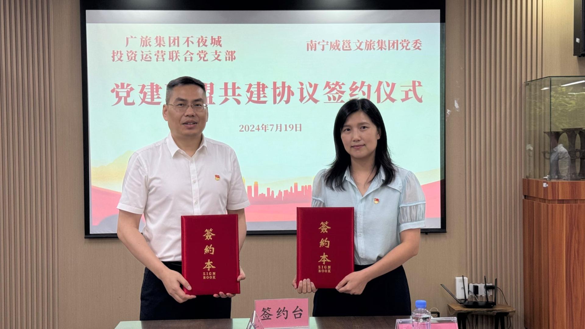 为进一步擦亮威邕文旅集团 “威心·邕韵”党建品牌特色,积极探索党员教育现场教学载体模式,增强党建与经营业务的深度融合与发展、互促共进,近日,威邕文旅集团党委与广西旅发置业集团不夜城投资运营联合党支部在邕州古城·三街两巷联合开展“党建引领聚合力,共话繁荣夜经济”共建活动,并举行党建联盟共建签约仪式。