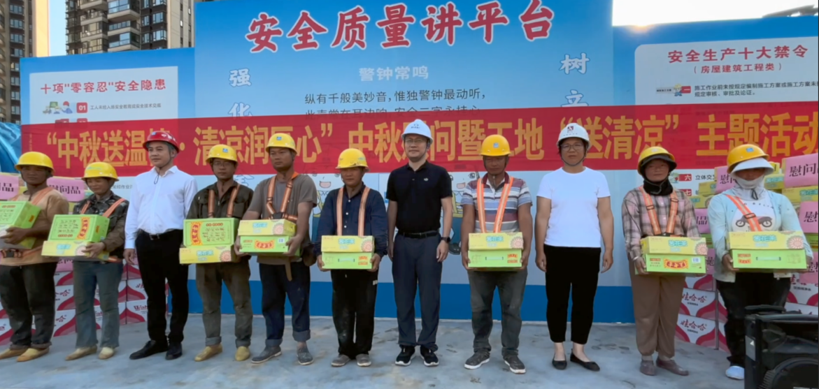 近日,乐鱼(中国)房地产开发集团联合中建八局广西建设有限公司在江湾路东小学项目共同开展“中秋送温情·清凉润匠心”中秋慰问暨工地“送清凉”主题活动。