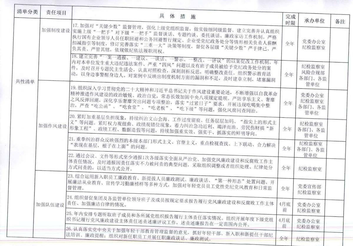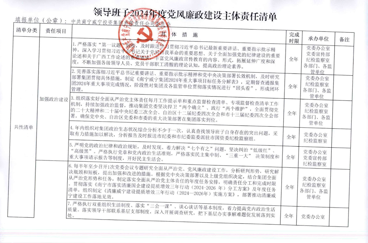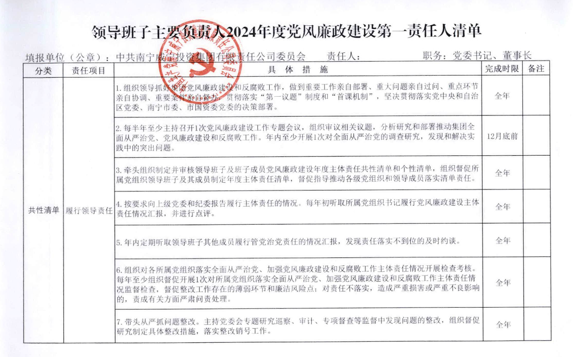乐鱼电竞(中国)官方网站2024年党风廉政建设领导班子、主要负责人及其他班子成员主体责任清单