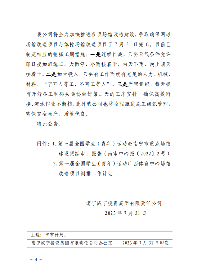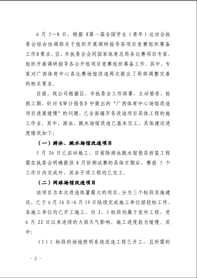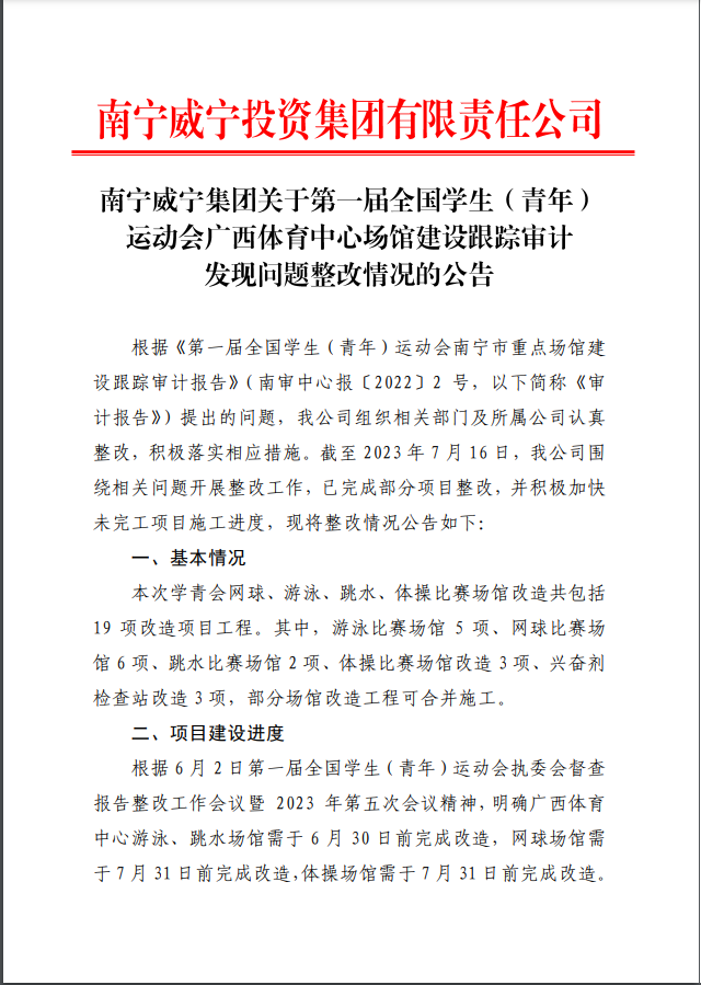 乐鱼电竞(中国)官方网站关于第一届全国学生(青年)运动会广西体育中心场馆建设跟踪审计发现问题整改情况的公告