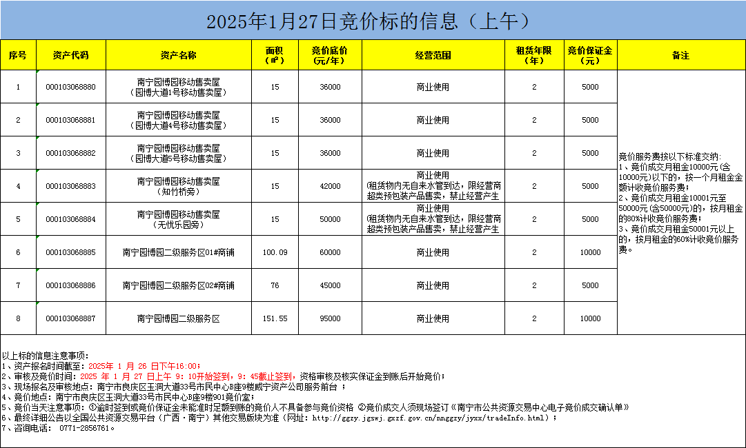 2025年1月27日竞价标的信息(现场竞价)