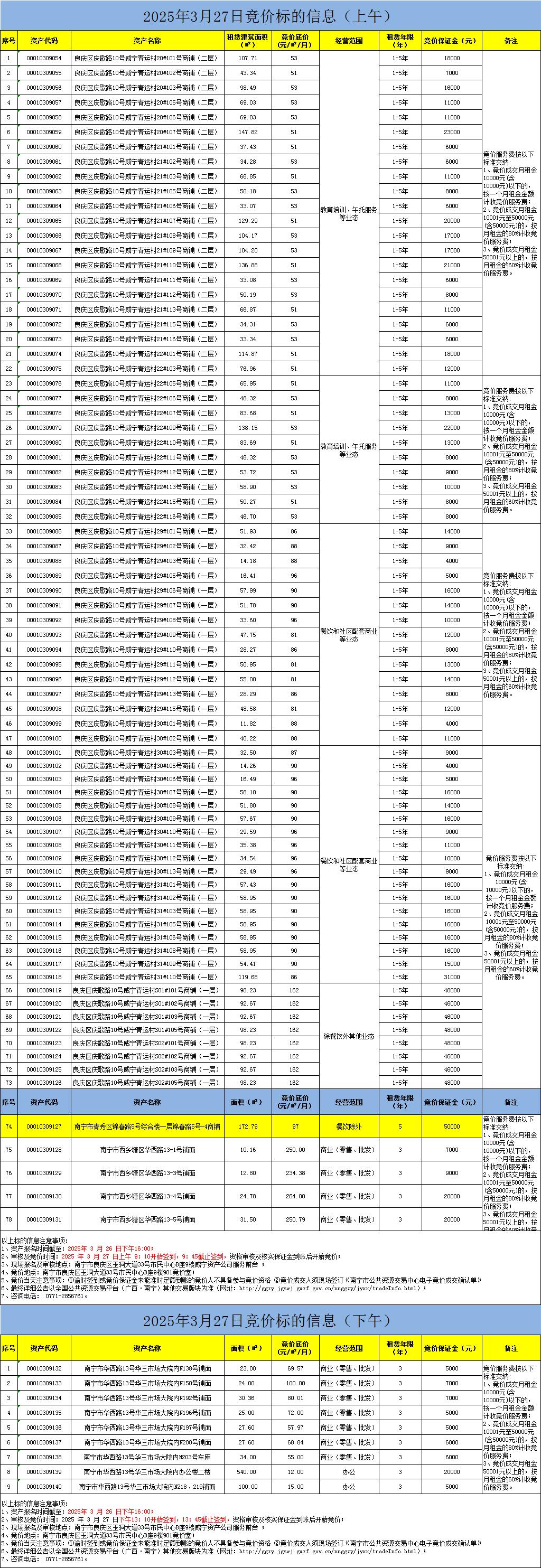 2025年3月27日上午/下午 竞价标的信息(现场竞价)
