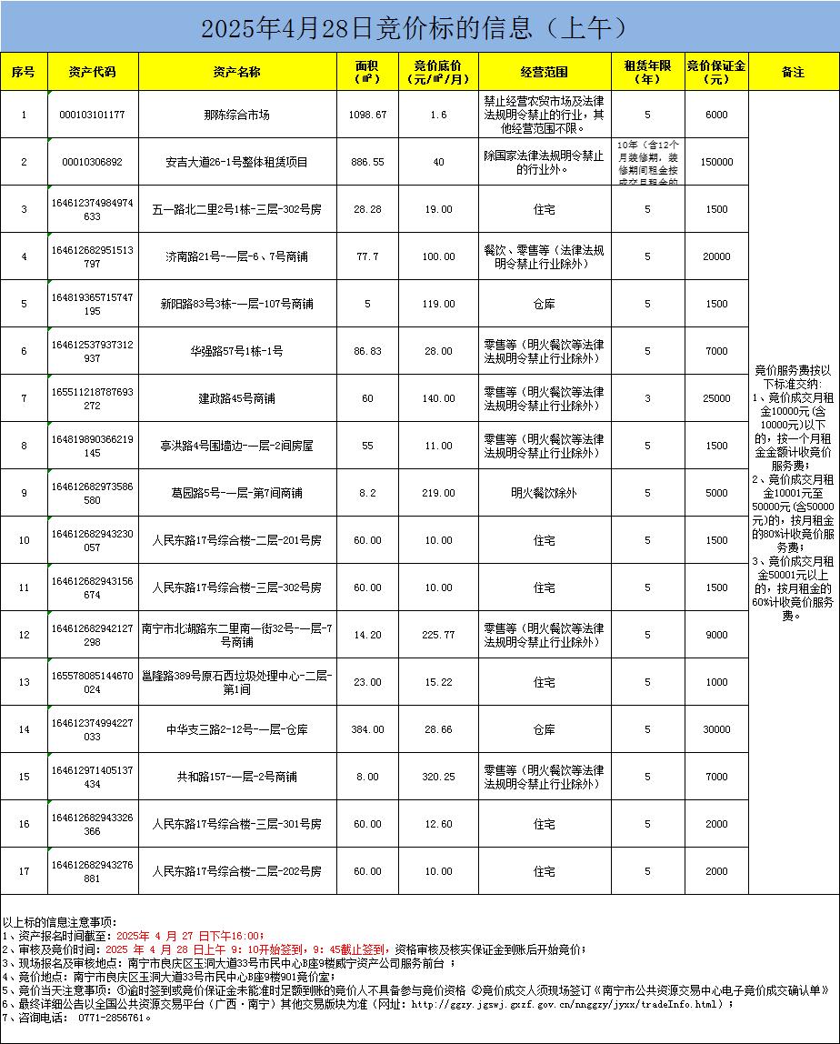 2025年4月28日竞价标的信息(现场竞价)
