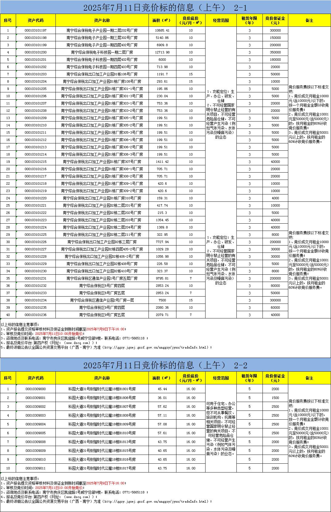 2025年7月11日竞价标的信息(线上竞价)