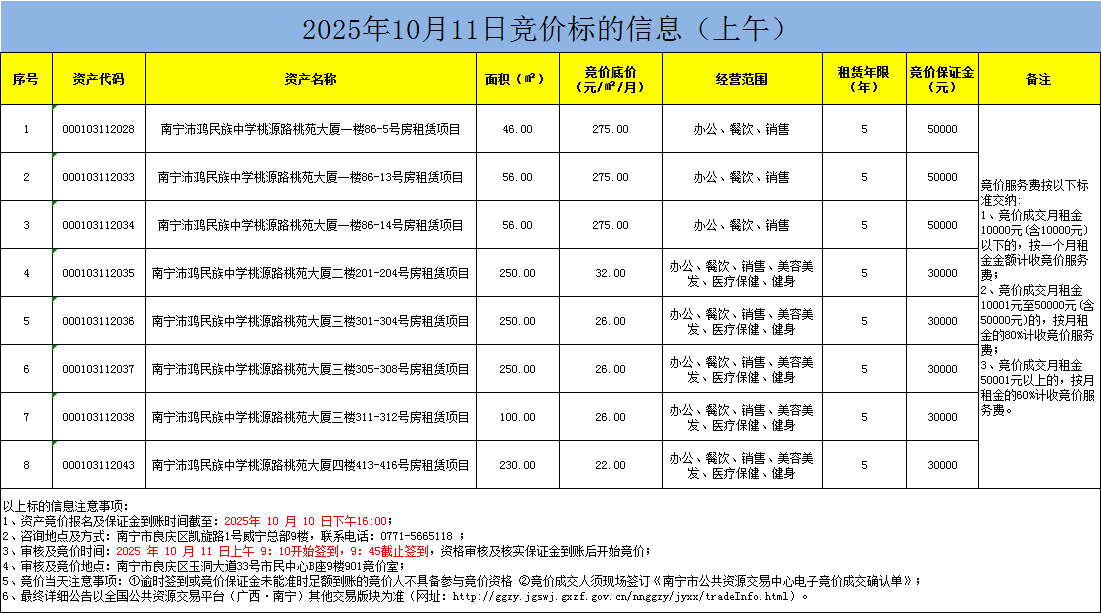 2025年10月11日竞价标的信息(现场竞价)