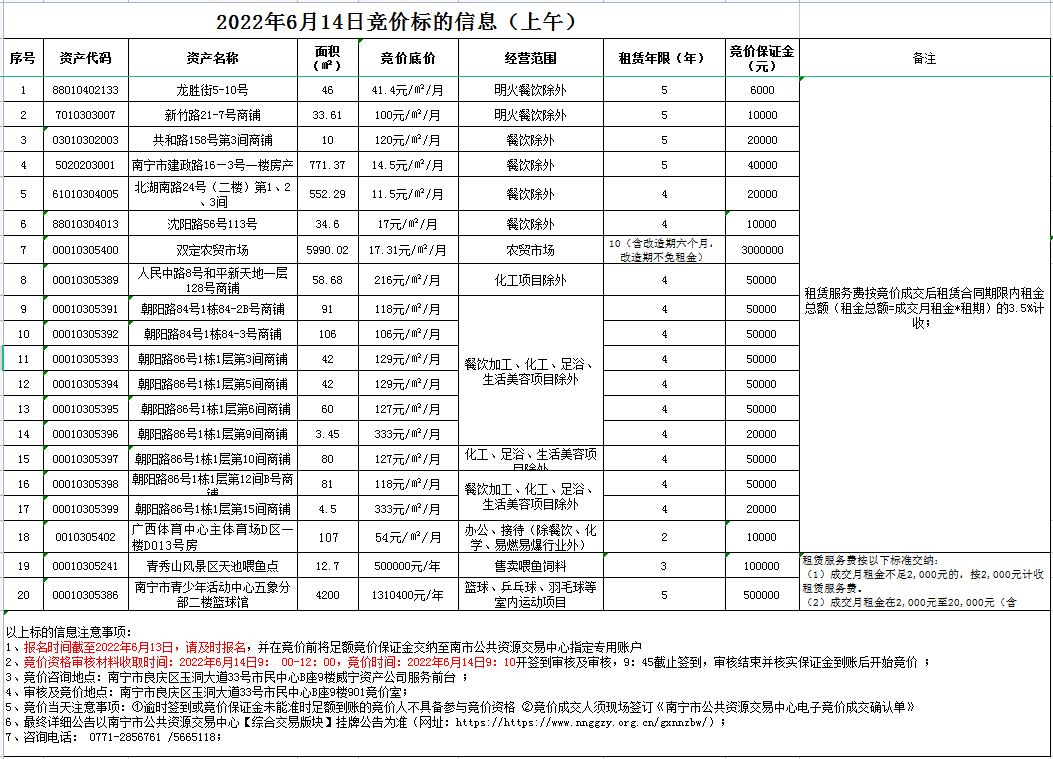 乐鱼(中国)资产公司2022年6月14日公开竞价标的信息