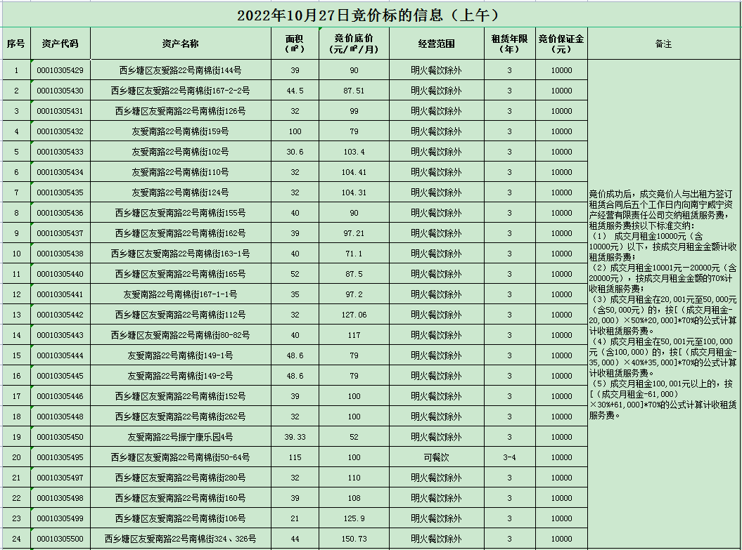 2022年10月27日竞价标的信息