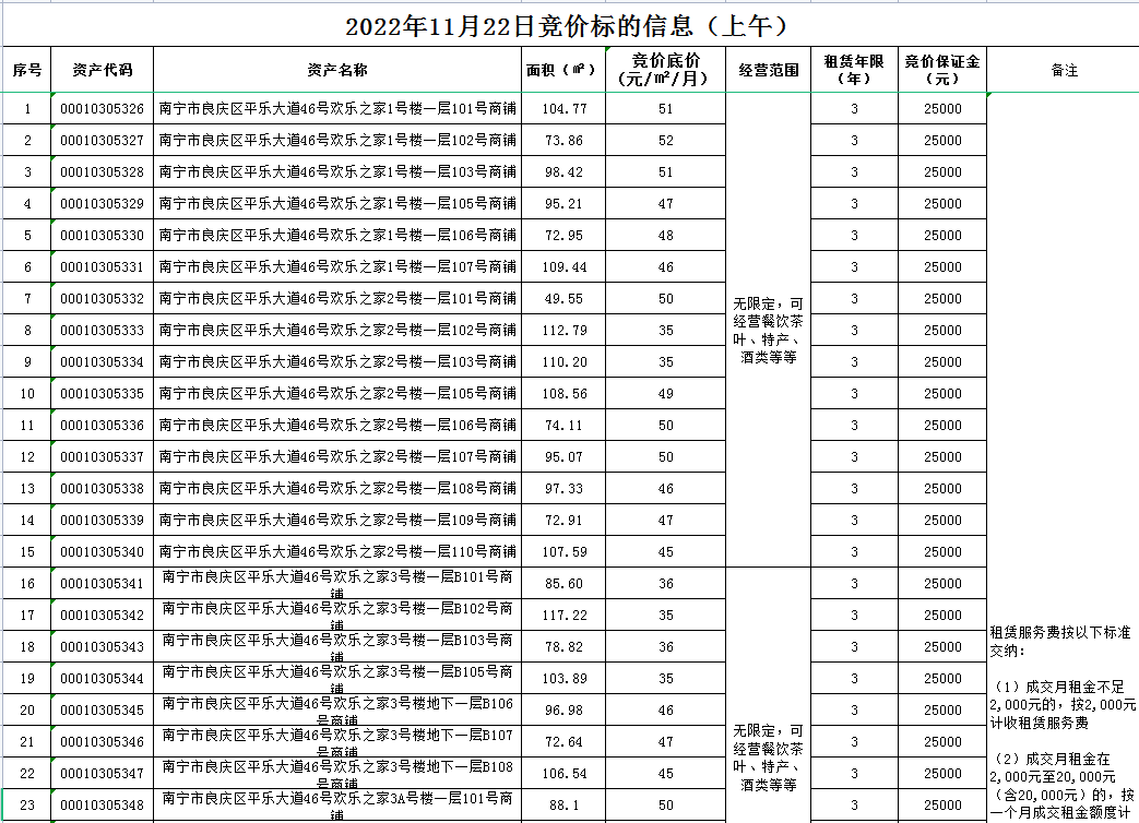 2022年11月22日竞价标的信息