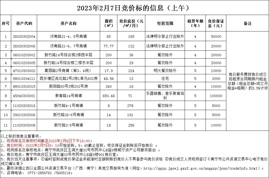 2023年2月7日竞价标的信息