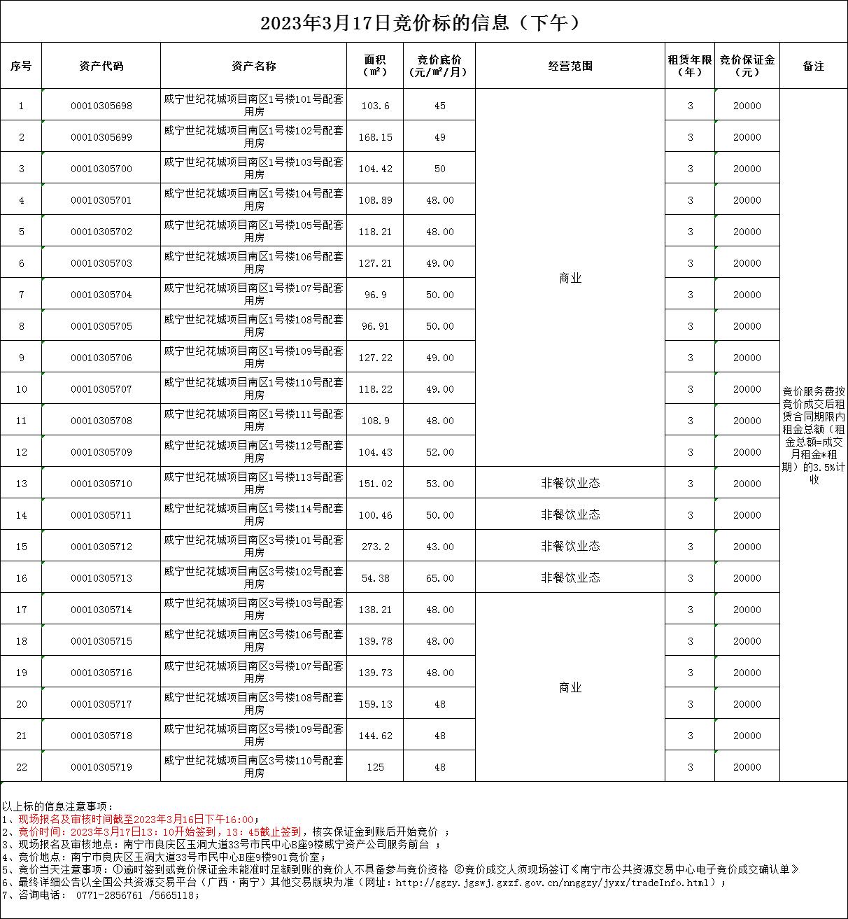 2023年3月17日竞价标的信息