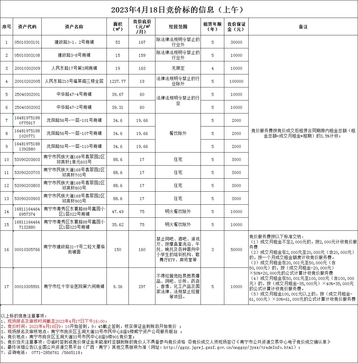 2023年4月18日竞价标的信息