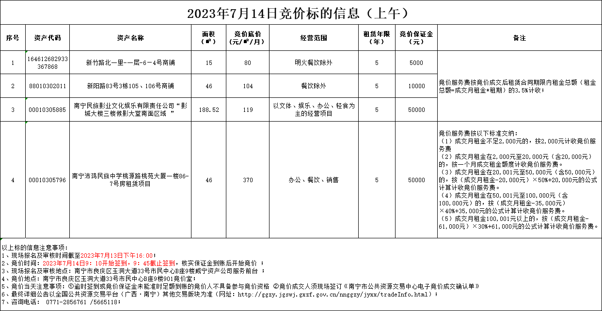 2023年7月14日竞价标的信息