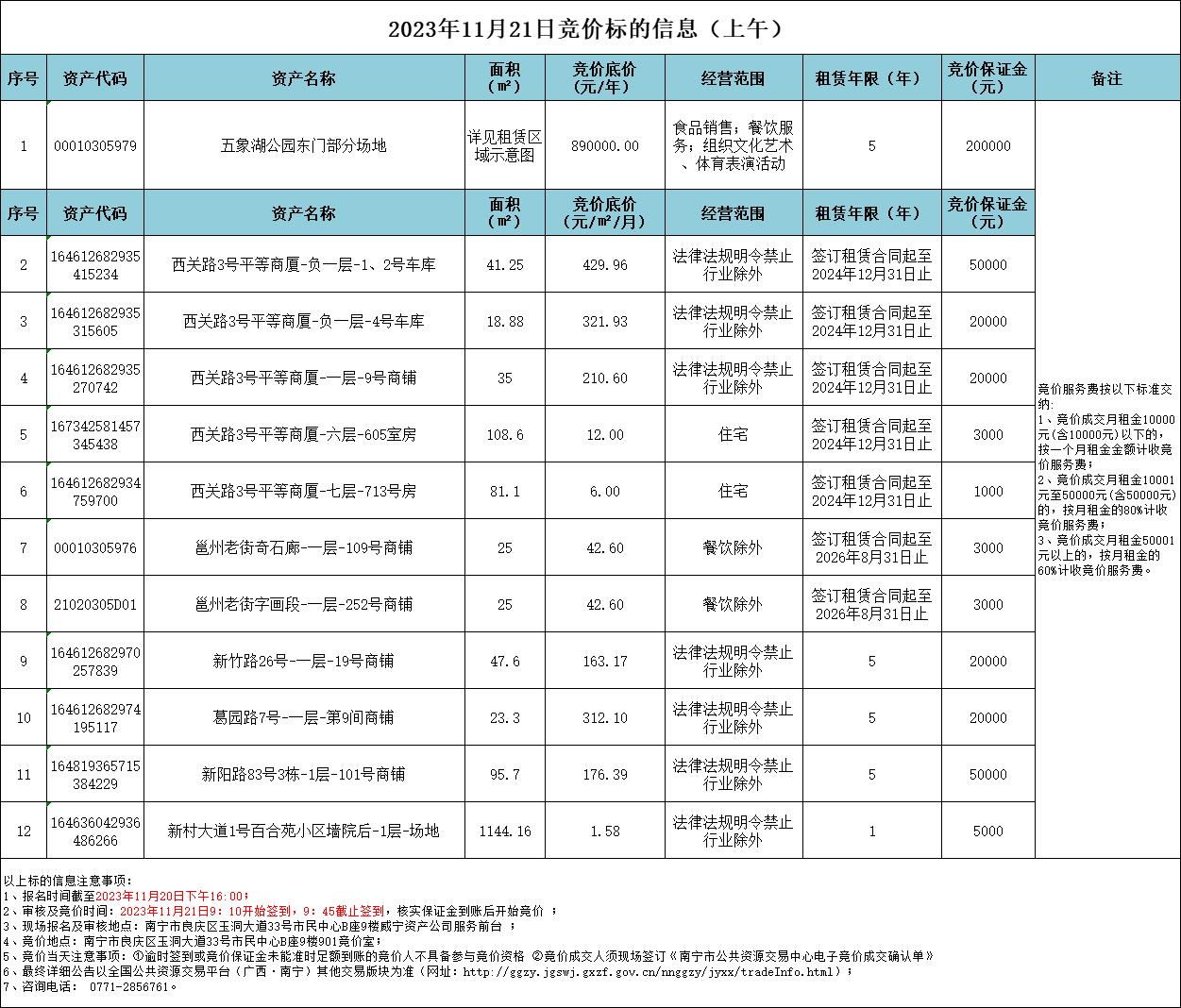 2023年11月21日竞价标的信息