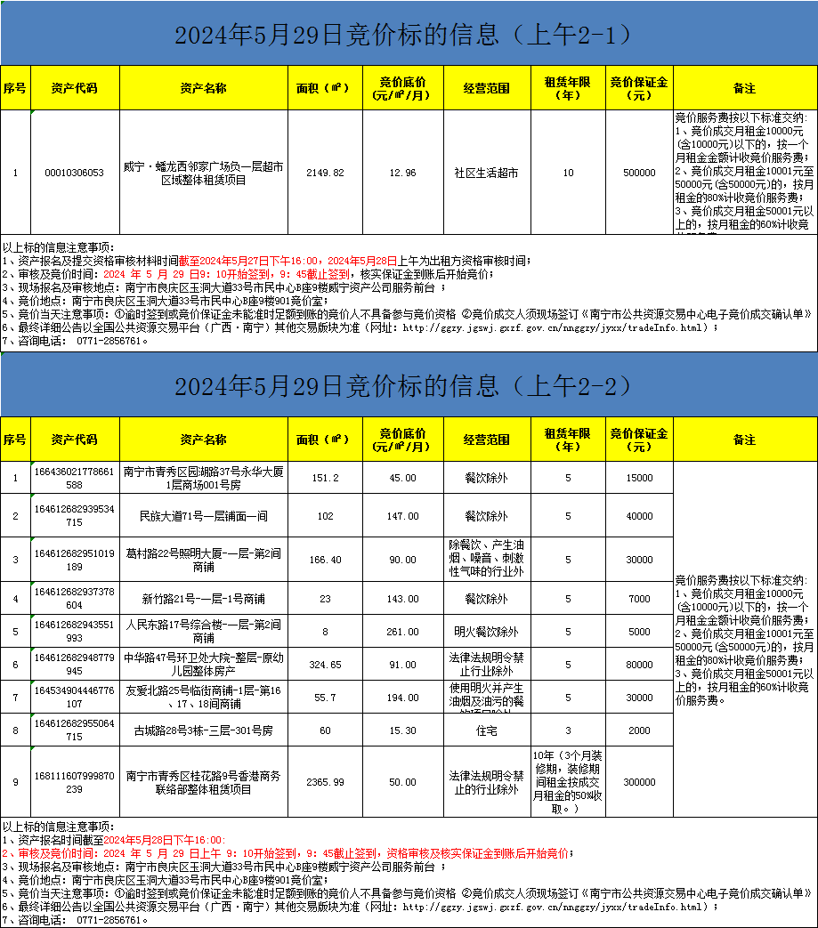 2024年5月29日竞价标的信息(现场竞价)