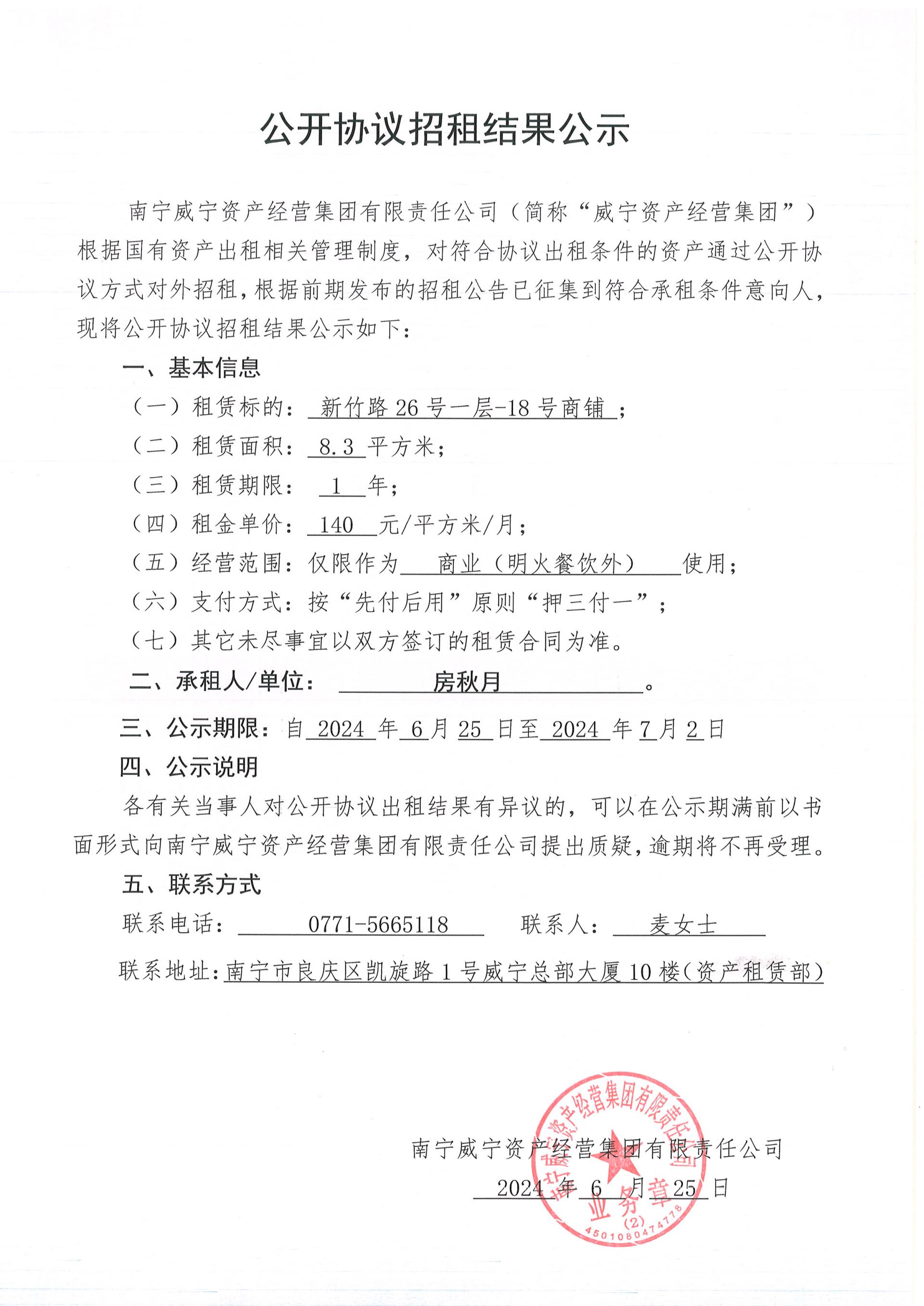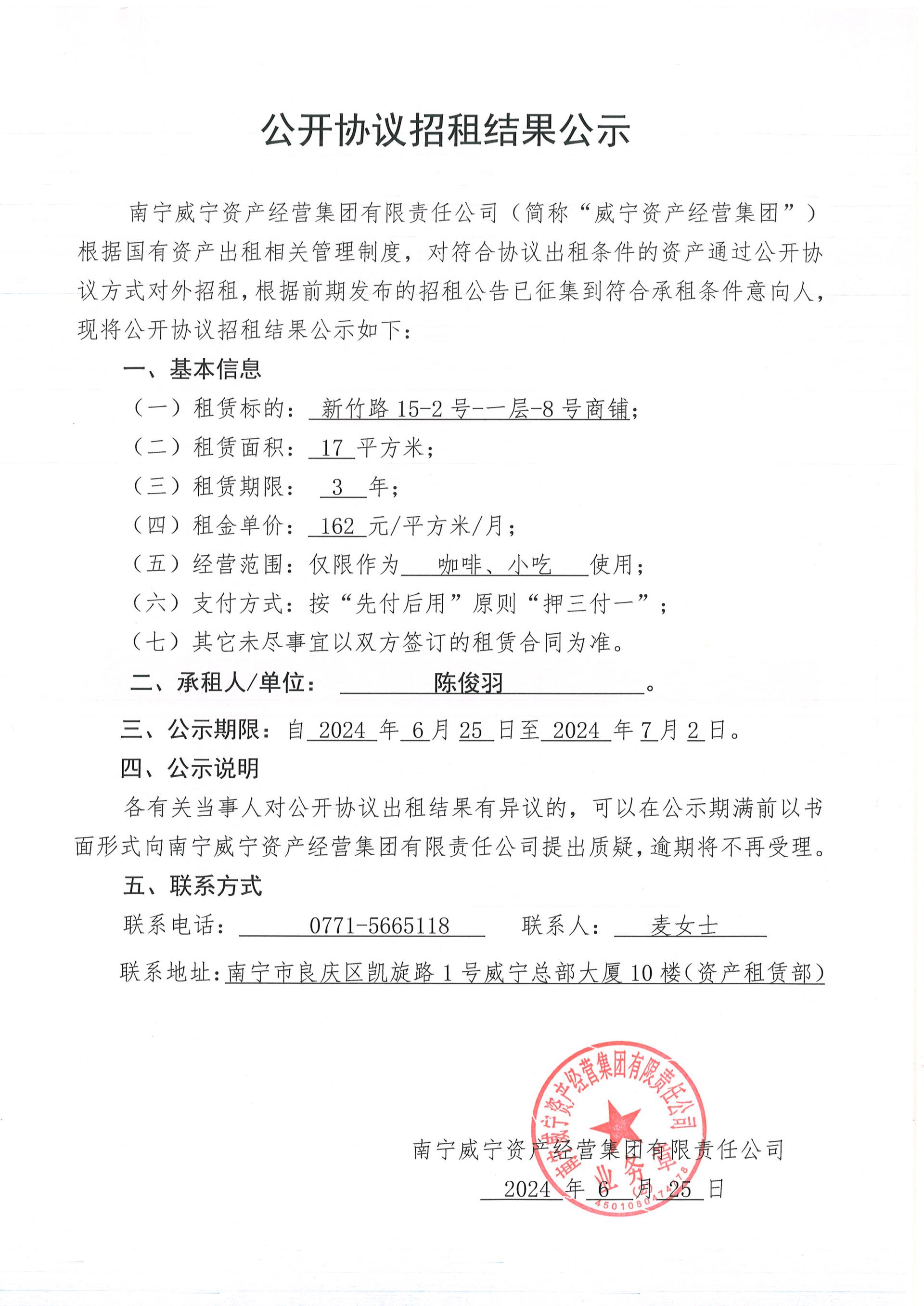 新竹路15-2号-8号商铺、新竹路26号-10号商铺、新竹路26号-18号商铺招租结果公示