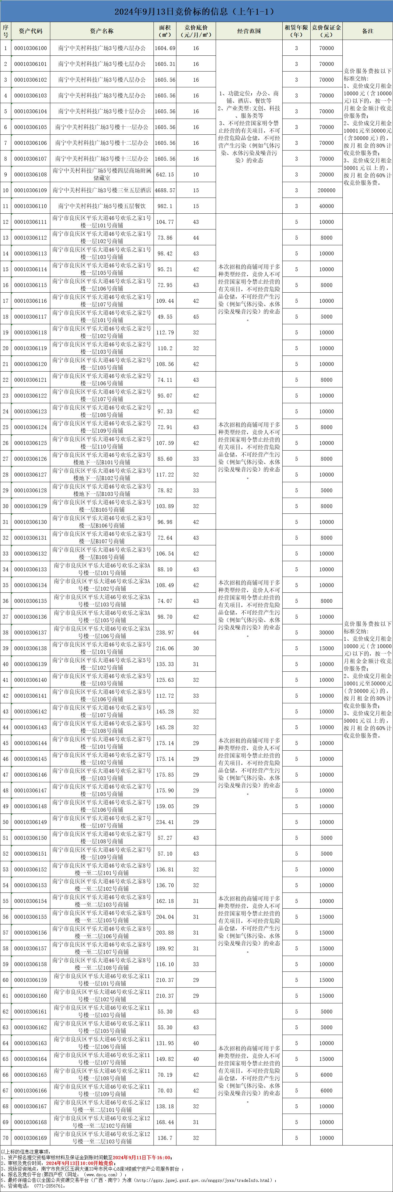 2024年9月13日竞价标的信息(线上竞价1-1)
