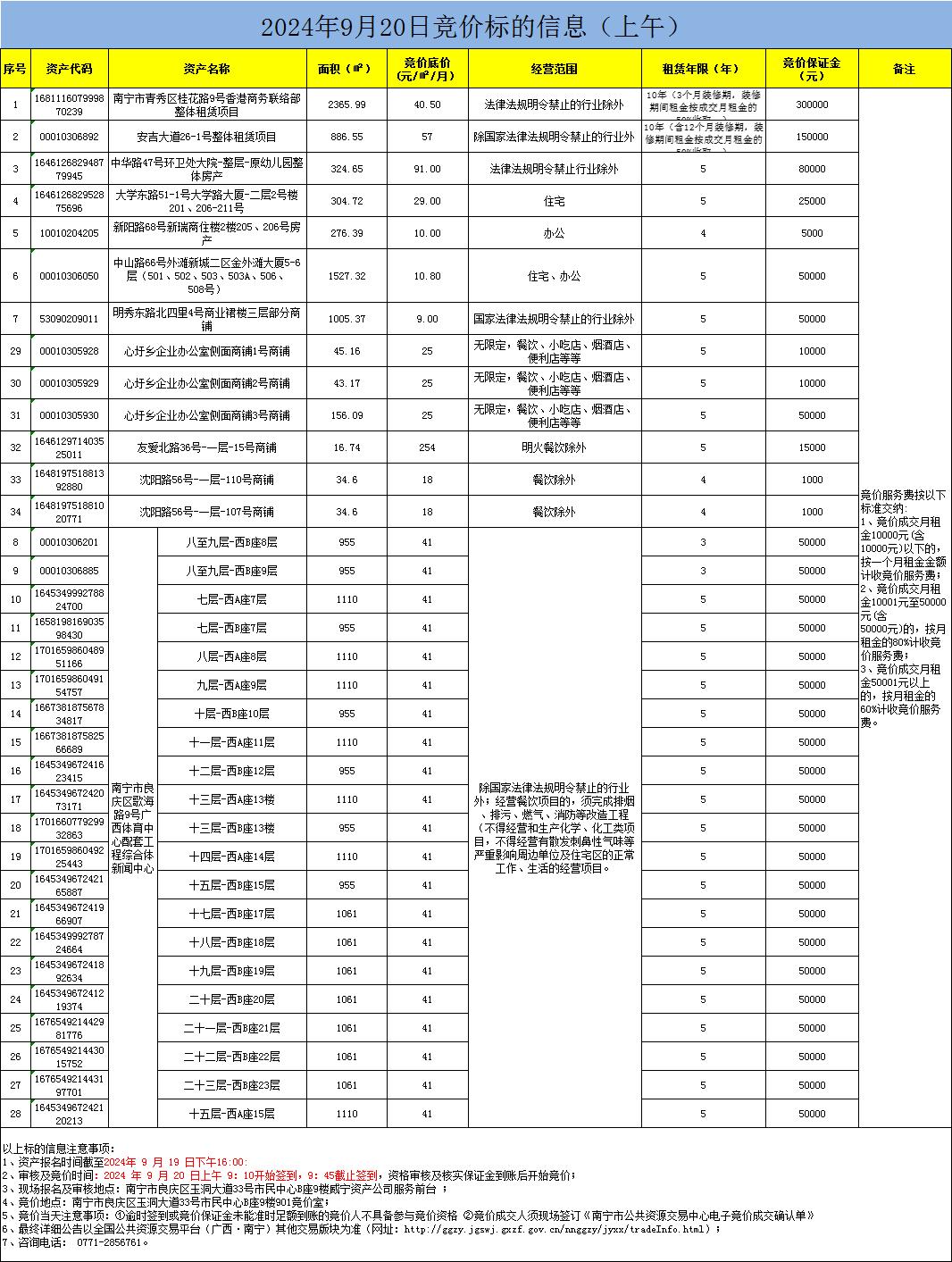 2024年9月20日竞价标的信息(现场竞价)