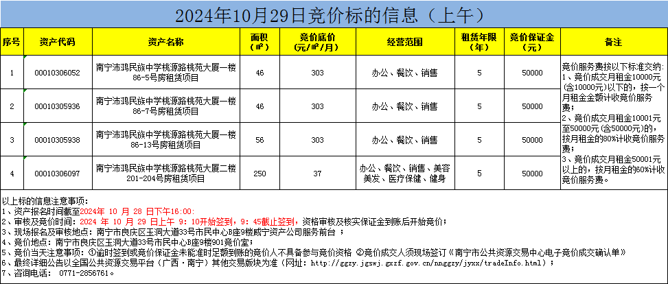 2024年10月29日上午竞价标的信息(现场竞价)