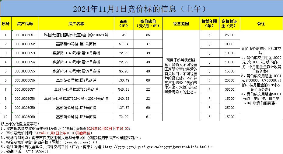 2024年11月1日竞价标的信息(线上竞价)