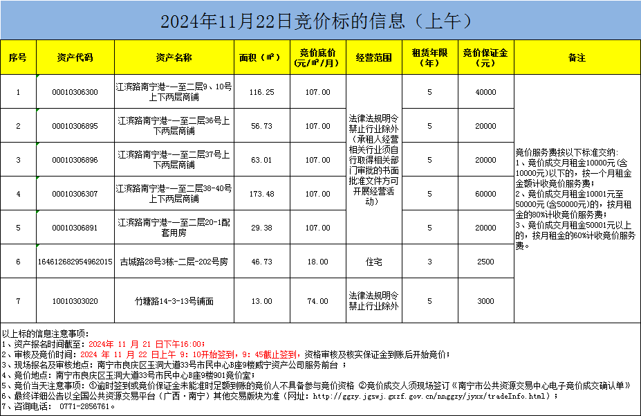 2024年11月22日竞价标的信息(现场竞价)