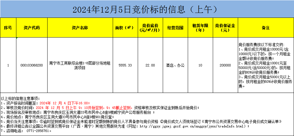 2024年12月5日竞价标的信息(现场竞价)