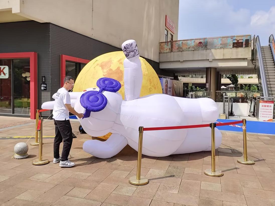 佳节临近,金菊·邻家广场为市民群众精心筹备中秋美陈,营造出花好月圆的中秋氛围。图为工作人员查看物料布展情况。