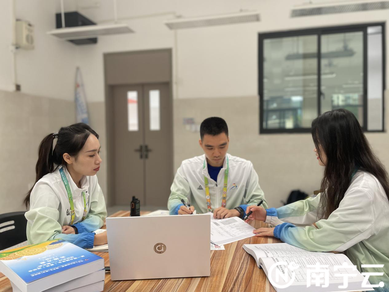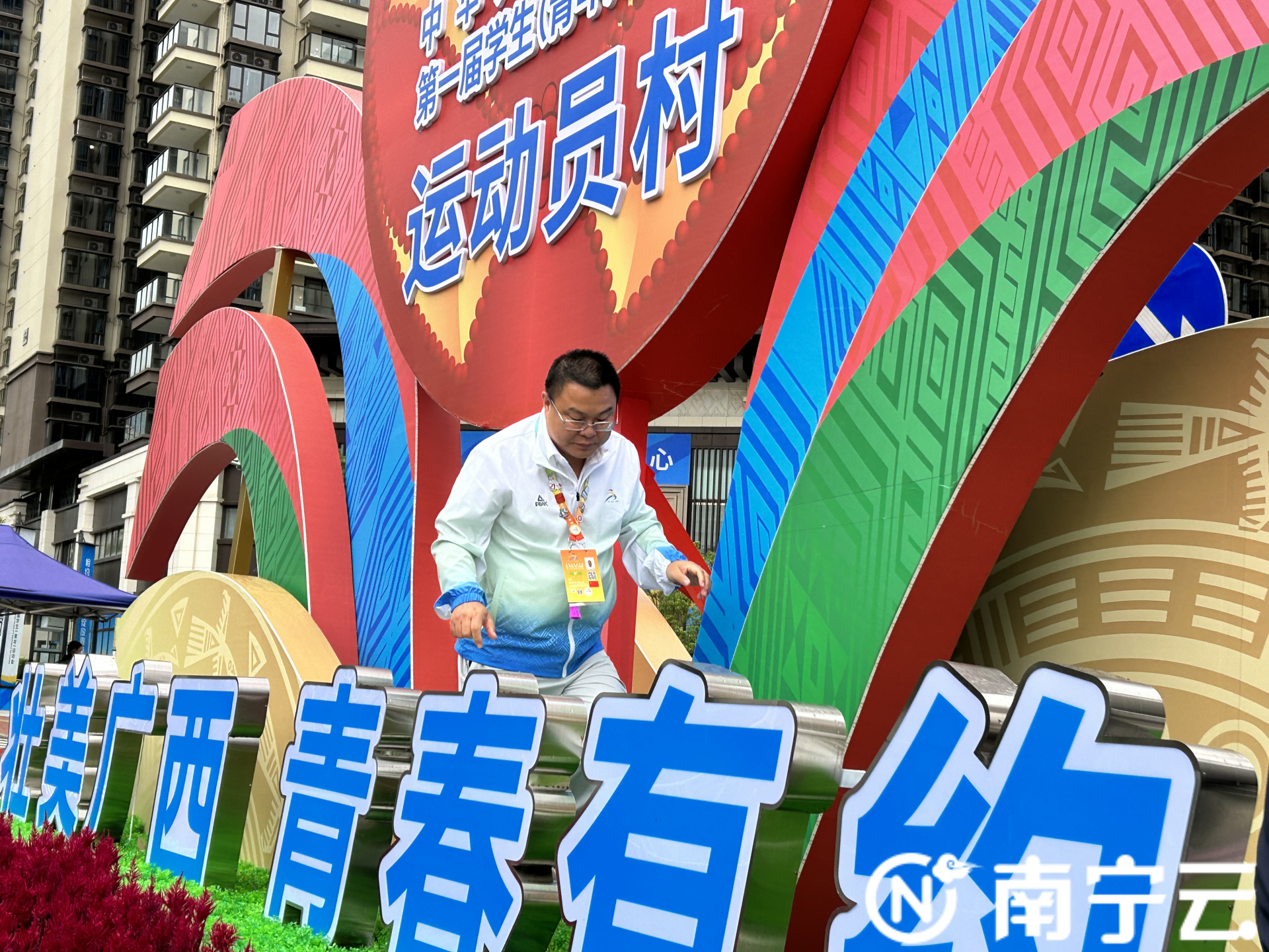 “打造南宁温馨家园,我们氛围组整活儿很关键!”作为学青会运动员村宣传文化中心氛围布置与标识标牌的管理与维护专项责任人叶庆,从前期踩点,到实际安装,再到后期维护,叶庆全部亲力亲为,他对村里的氛围布置设计细节了如指掌,大到每个大堂中的吉祥物、小到每个房间的防撞标识、甚至门上的标贴,都由团队的“氛围营造组”精心打造。“这里的...