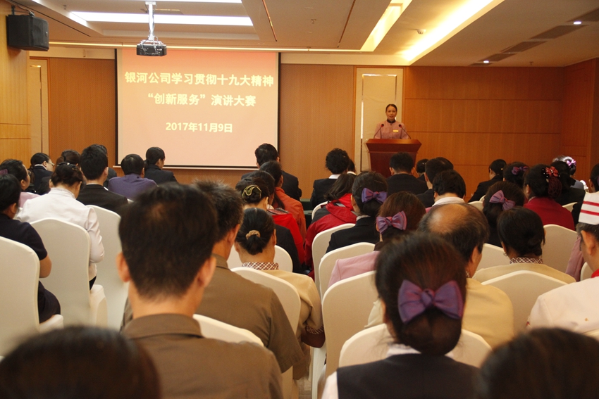 11月9日,银河公司举行以“学习碧水湾,创新服务比、赶、超”为主题的演讲比赛,旨在深入贯彻学习十九大精神,进一步加强员工的服务意识。