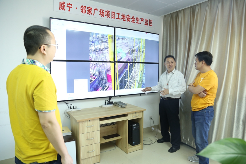 黎镇宇到乐鱼(中国)邻家股份公司检查指导安全生产工作四块显示屏全方位多角度显示项目工地情况,安全监控岗位工作人员实时监控,记录并纠正不文明安全行为。2017年11月3日上午,乐鱼(中国)投资集团副总经理黎镇宇带领集团公司总工办、安全监管部相关人员来到乐鱼(中国)邻家股份公司,调研乐鱼(中国)•邻家广场项目工地安全生产监控系统运行情况。在乐鱼(中国)邻家股份公司安全监管部运营管理部安全生产监控岗,黎镇宇听取了公司董事长谭全强对视频监控系统