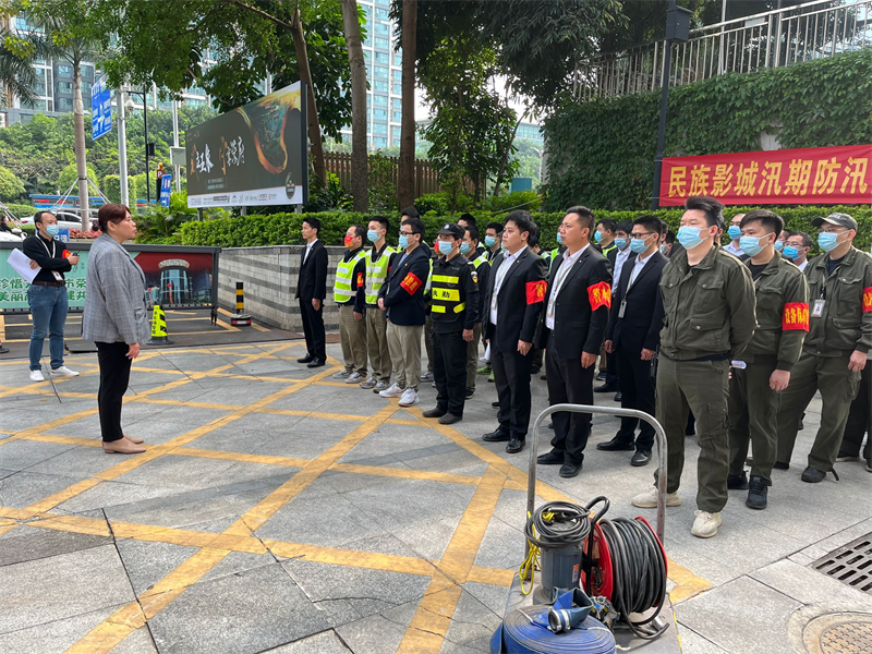 演练动员抢险救援队员正在紧张构筑防水沙包阵地演练指挥部成员在防洪防汛指挥中心指挥演练2022年4月20日上午,南宁民族影业文化娱乐有限责任公司开展一年一度防汛防内涝应急抢险演练以及自愿消防队员消防技能培训活动。民影公司党支部书记、董事长苏红在活动开始前作动员中指出,当前由于受疫情持续影响,虽然影城根据南宁市抗疫指挥部的工作要求,整体经营处于暂时关闭状态,但是影城的安全生产工作却容不得放松、侥幸心理