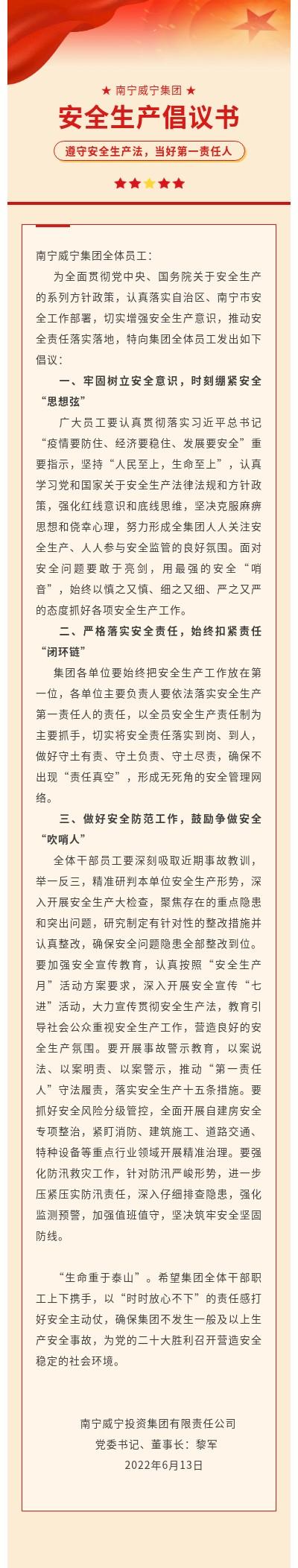 乐鱼电竞(中国)官方网站安全生产倡议书