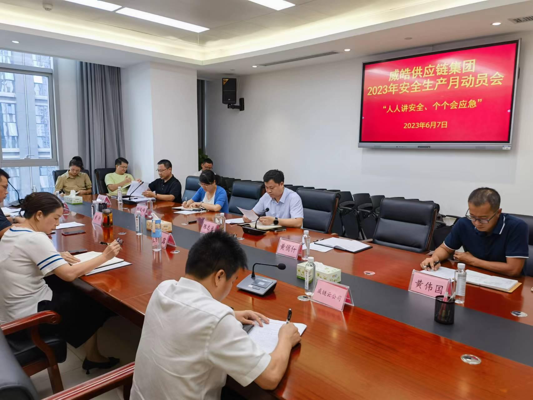6月7日上午,威皓供应链集团在1509会议室召开2023年安全生产月动员会,会议由威皓供应链集团副总经理黄庆全主持,威皓供应链集团党委副书记、总经理陈志光出席会议并讲话。会上,参会人员观看了两部安全生产事故警示片,真实的事件与案例给在场的人员上了一堂生动的安全教育课。黄庆全传达学习了习近平总书记关于安全生产重要论述、国务院安全生产15条硬措施、自治区20条实施意见和南宁市40条细化举措,并宣读《2023...