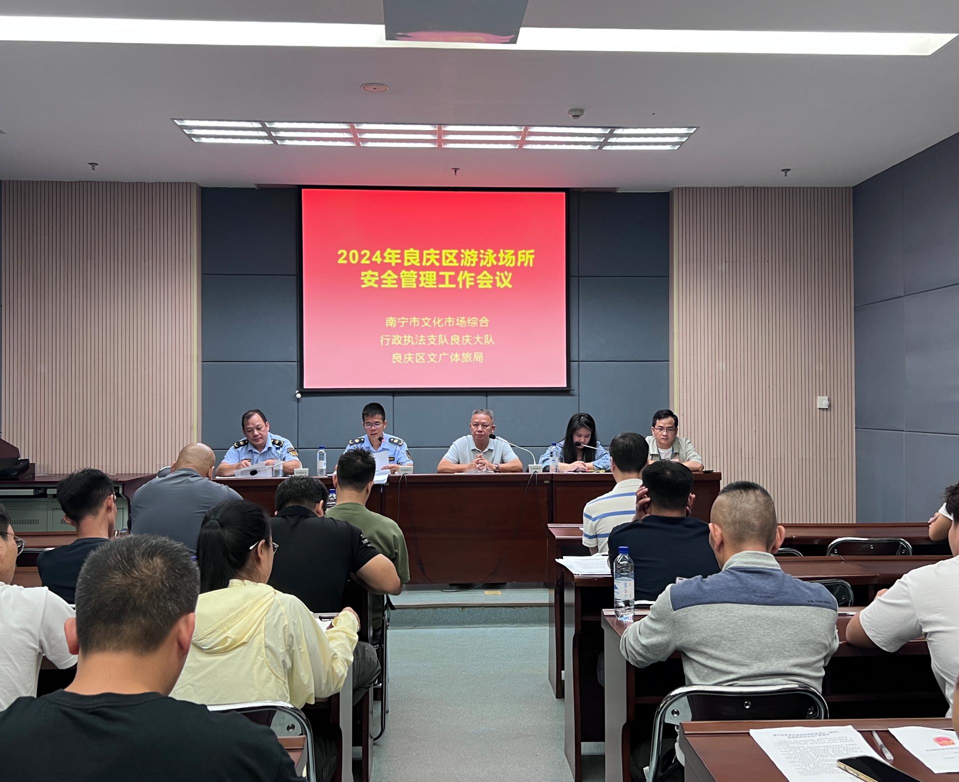 为全面贯彻落实习近平总书记关于安全生产重要论述和自治区各级部门关于安全生产工作指示要求,厚实游泳场所安全管理工作基础,为平安护航夏季游泳高峰期营造良好安全氛围,近日,南宁市文化市场综合行政执法支队良庆大队、良庆区文广体旅局在广西体育中心游泳馆新闻发布厅联合召开2024年良庆区游泳场所安全管理工作会。会上,威邕文旅集团副总经理林国城就游泳馆安全管理工作,...