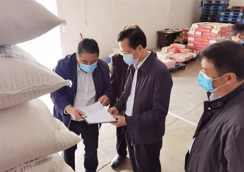 2021年2月4日上午,自治区粮食和物资储备局副局长韦尚英率队前往南宁市储备粮公司沙井粮库,就粮油应急储备工作开展督导检查。