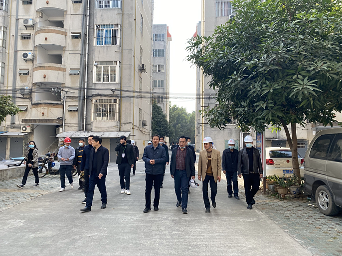 近日,南宁市副市长、五象新区管委会副主任李建文到南化集团第一生活区、南宁麻纺织厂宿舍、南船新区宿舍三个老旧小区改造现场开展调研工作。