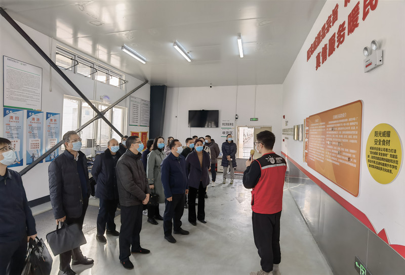 实地参观基地生鲜库现场调研信息化系统2022年1月11日下午,贵港市人民政府副秘书长覃华宁一行11人到威耀供应链公司五象配送基地实地调研学校食材集采集配项目,南宁乐鱼(中国)投资集团有限责任公司副总经理滕振旗陪同调研。覃华宁一行实地参观了五象配送基地的生鲜库及冷链车场,对场地投资建设,食材的检验检测、入库、储存、出库、分拣、配送、信息化系统、车辆监控等各个环节进行全方位的了解,并对于威耀供应链公司始终秉承