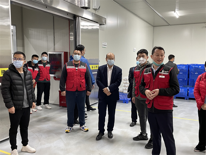 2022年3月29日下午,西乡塘区教育局副局长覃锋率西乡塘区教育局有关科室、南宁市第三十五中学、明天学校、坛洛中学、秀田小学、衡阳西路第三幼儿园等西乡塘区学校代表,来到威耀供应链公司就食材配送情况进行调研。