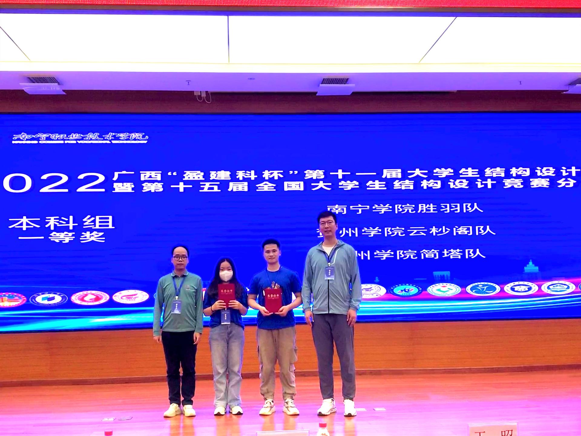 2022年5月21日,由广西住建厅、广西教育厅联合主办的广西第十一届大学生结构设计竞赛暨第十五届全国大学生结构设计竞赛广西分区赛在南宁职业技术学院落下帷幕,我校收获颇丰!大学生结构设计竞赛是教育部认可的一类学科竞赛,属于土木工程专业规模最大、参赛队伍最多,含金量最高的专业赛事,被誉为“土木工程皇冠上最璀璨的明珠”。本次比赛有广西大学、桂林理工大学、广...