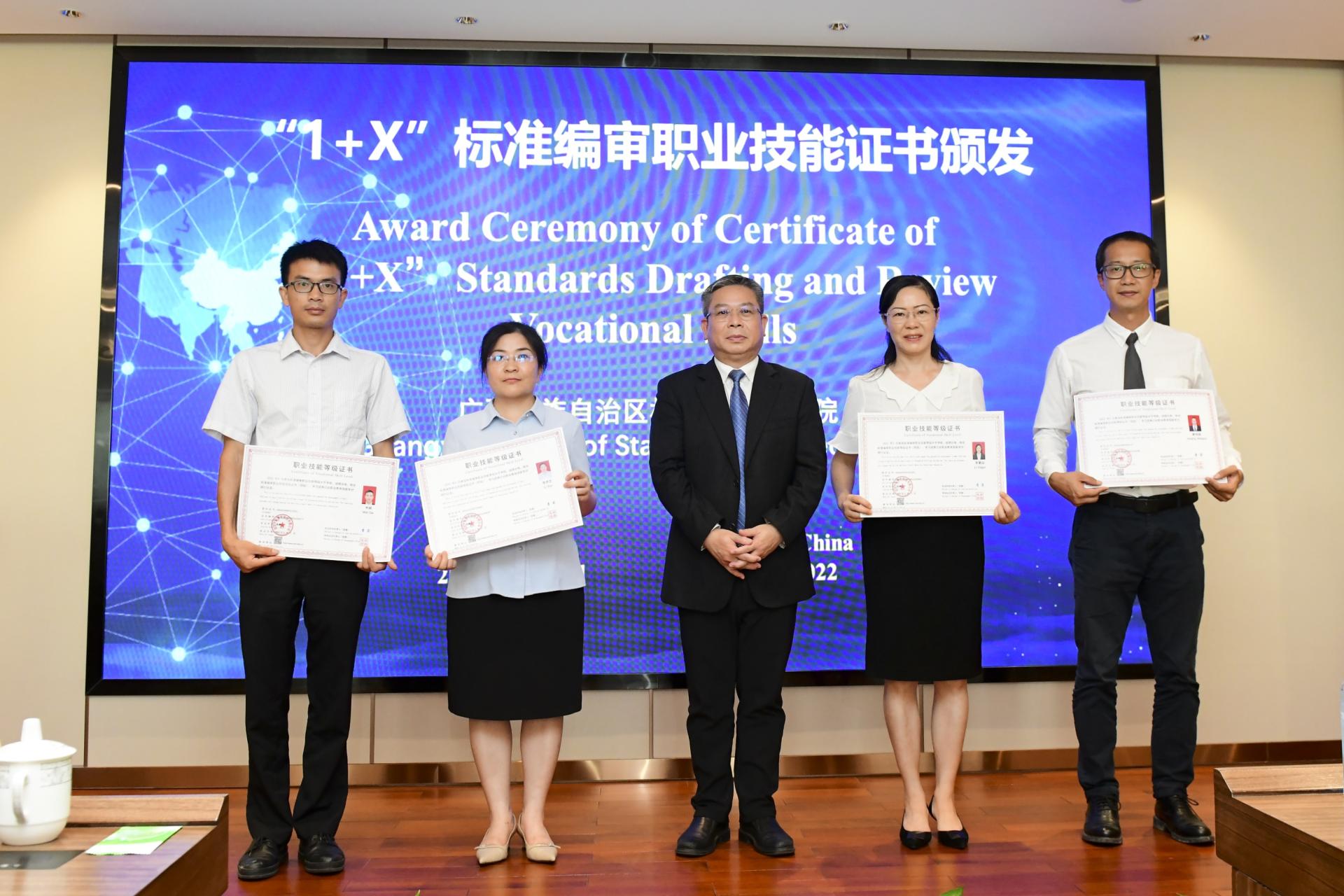 2022年7月25日,在《面向东盟国家中医药标准和认证认可国际培训班》开班仪式上,广西壮族自治区市场监督管理局党组成员、自治区药监局党组书记、局长黄琛为首批取得“1+X“标准编审职业技能证书的学员代表颁发证书,威耀供应链公司副总经理黄伟国代表公司5名学员领证。当天,科技部国际合作司副司长徐捷、市场监管总局标准创新司副司长李玉冰、广西壮族自治区人民政府副...