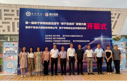 经过近3个多月的紧张筹备,南宁学院第一届南宁学院校园生活节暨“南宁百货杯”营销大赛开幕仪式及校企合作签约仪式于2022年9月22日下午,在南宁学院体育馆前广场隆重举行。南宁百货大楼股份有限公司总经理覃耀杯,南宁百货大楼股份有限公司党委副书记胡盛品,南宁百货大楼股份有限公司新零售运营中心总经理李春阳,南宁学院校长李栋学,南宁学院副校长陈雄章,南宁学院创新创业学院院长马骏,南宁学院商学院党委书记吴忠,南...