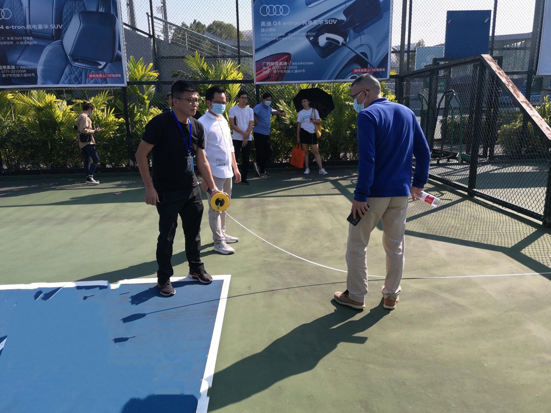 国家体育总局专家、自治区及南宁市执委会相关职能部门人员到广西体育中心考察网球中心场地及设施设备情况