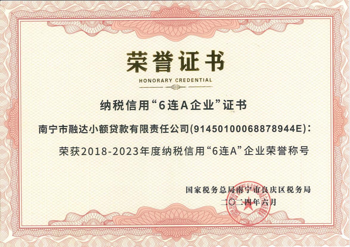 融达小贷公司荣获纳税信用“6连A”企业荣誉称号