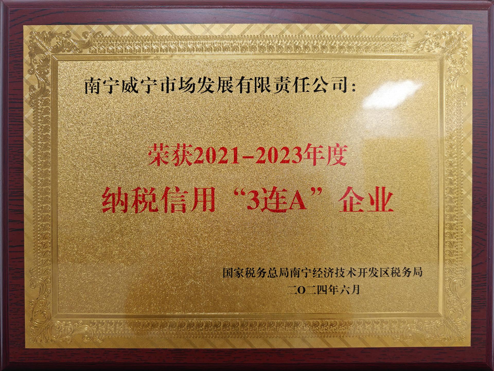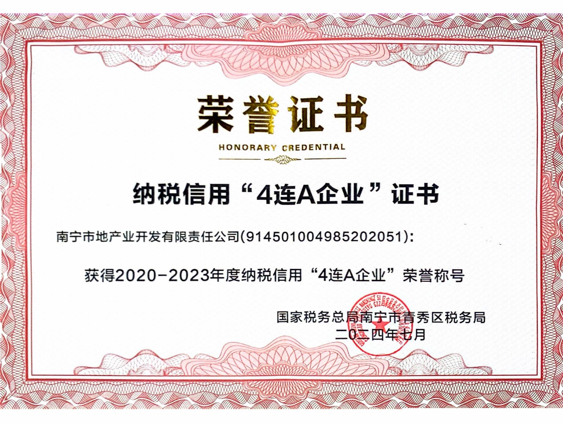 喜报!地产业公司荣获2020-2023年度纳税信用“4连A企业”荣誉称号