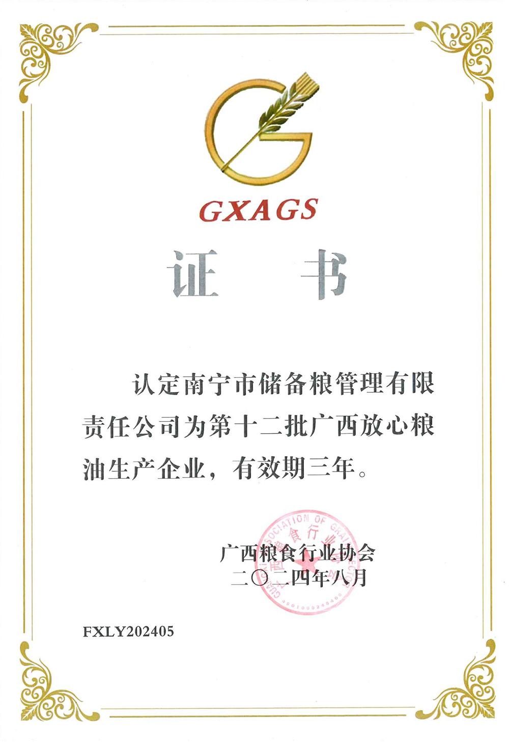 连续9年!南宁市储备粮公司荣获“广西放心粮油生产企业”认证