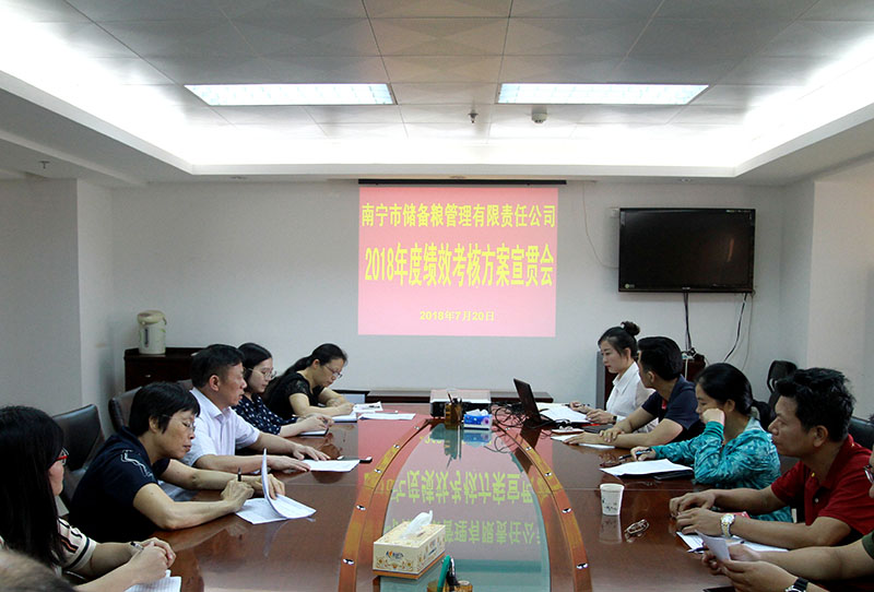 2018年7月20日 ,储备粮公司召开2018年度绩效考核方案宣贯会,加强经营、生产的管控,实现企业协调发展的目标。