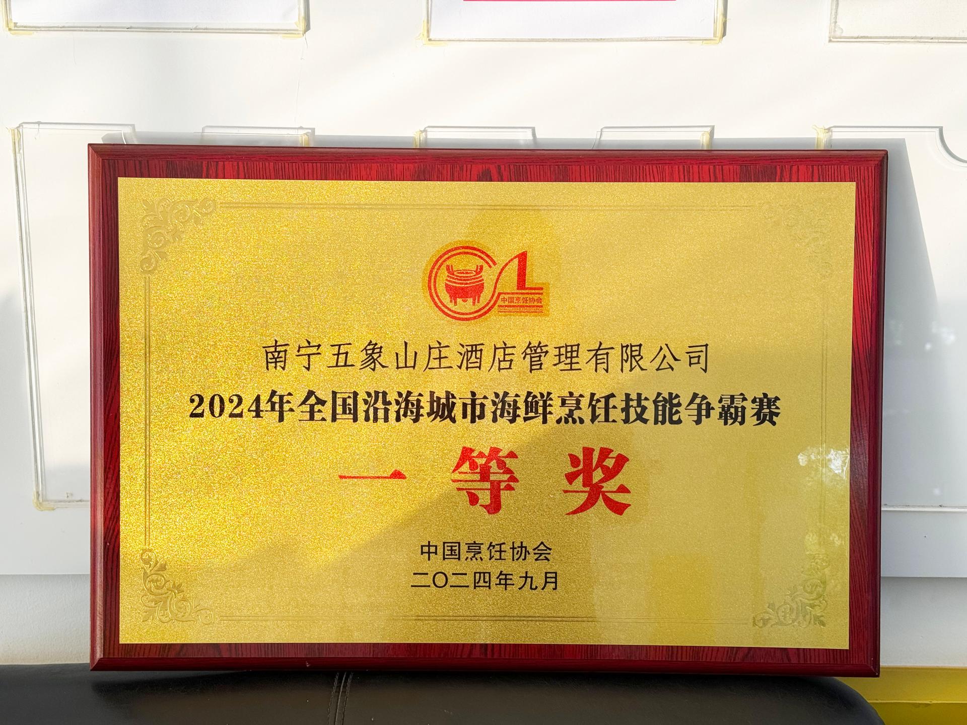 近期,五象山庄厨师团队在第十二届广西民族地方特色美食大赛、全国沿海城市海鲜烹饪技能争霸赛中脱颖而出,一举夺得2024年全国沿海城市海鲜烹饪技能争霸赛一等奖;第十二届广西民族地方特色美食大赛一项菜品“特金奖”、一项菜品“金奖”,在高手如林的美食行业中尽显一枝独秀。为备战美食赛事,五象山庄提前一个月进行作品创作,反复推敲制定参赛作品,从口味、营养搭配、摆盘设计等方面进行多次调整,以其精湛的厨艺,匠心打...