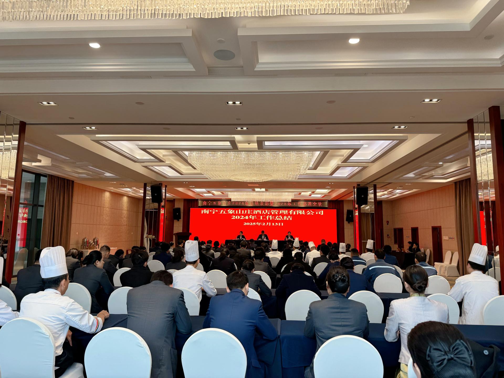 辞旧迎新,继往开来。2025年2月13日上午,五象山庄2024年总结表彰暨2025年工作部署会议在9号楼宴会厅召开。山庄领导班子成员、中高层管理人员及骨干员工86人参加会议。会议伊始,山庄常务副总经理何月华对2024年工作进行了全面总结。她肯定了在过去一年,面对复杂多变的市场环境,五象山庄全体员工团结一心、砥砺奋进,在成本管控、服务质量、产品创新、品牌建设、经营利润等方面均取得了显著成绩,为山庄持续健康发展奠定了坚...