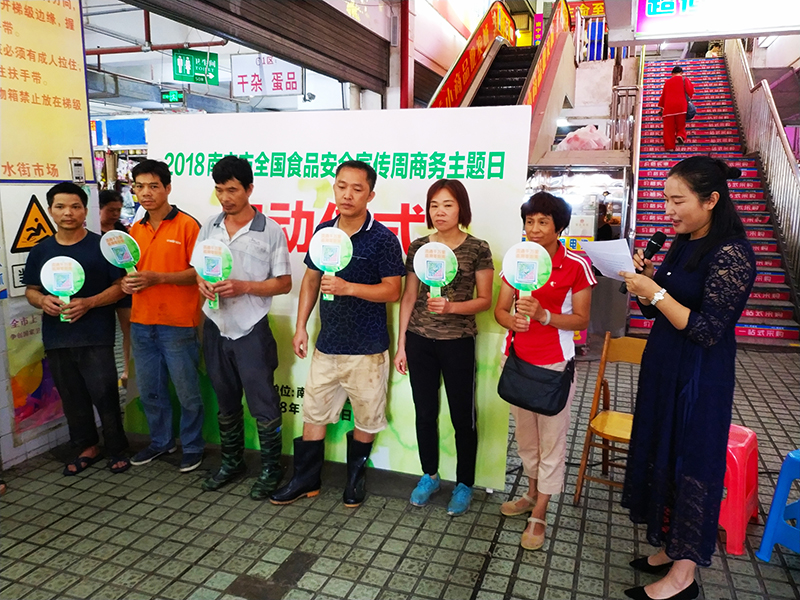 2018年7月27日,2018年南宁市全国食品安全宣传周商务主题日启动仪式在乐鱼(中国)市场公司经营管理的水街市场和飞凤市场举办,乐鱼(中国)市场公司积极配合主办方开展了相关宣传活动。