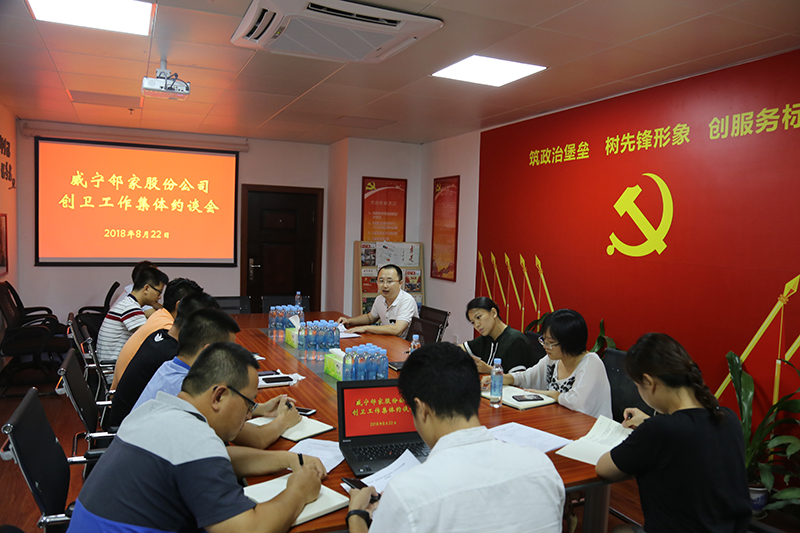 “本周为创卫迎检的最后冲刺阶段,现要求各部门从备战状态转到临战状态······”。2018年8月22日,南宁乐鱼(中国)邻家股份公司召开创卫工作集体约谈会,传达了创卫临战工作通知内容,通报了8月14-16日集团公司创卫复审督查组对邻家广场各项目创卫督查工作情况及处罚决定,并就下一步创卫工作进行部署。